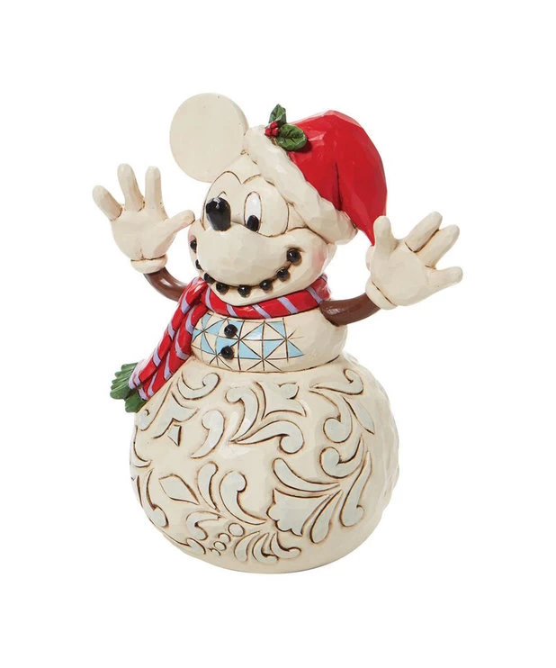 C’est Mickey Mouse ou Mickey le bonhomme de neige ? Vêtue d’un bonnet et d’une écharpe, cette création enneigée ressemble à son créateur. Conçu par Jim Shore, ce charmant bonhomme de neige fait une merveille d’ornement de Noël. Accrochez-le à votre pote d’arbre !
