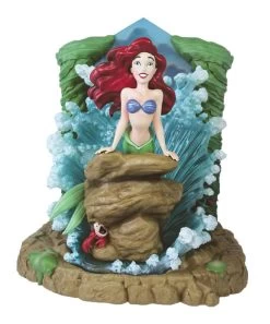 Rêvant de faire partie de votre monde, Ariel se perche sur les pierres de la mer sous les yeux de Sébastien. Les vagues de résine claire qui s’écrasent derrière elle illuminent la scène du paysage marin. Cette sculpture exquise capture les rêves et les aventures d’Ariel dans les moindres détails.