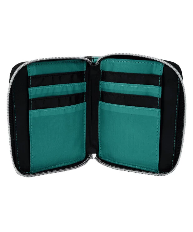 The Loungefly Funko Demon Slayer Wallet is made of vegan leather (polyurethane). Wallet zips closed with sturdy metal hardware and features printed details.