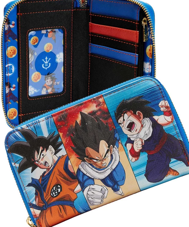 - Le portefeuille Loungefly Dragon Ball Z Évolution est fabriqué en cuir végétalien Saffiano (polyuréthane).