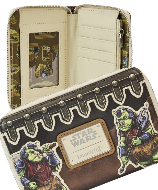 - Le portefeuille Loungefly Star Wars ™: Return Of The Jedi ™ Jabba’s Palace est en cuir végétalien (polyuréthane).